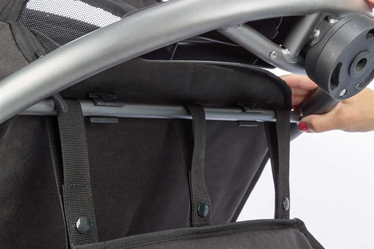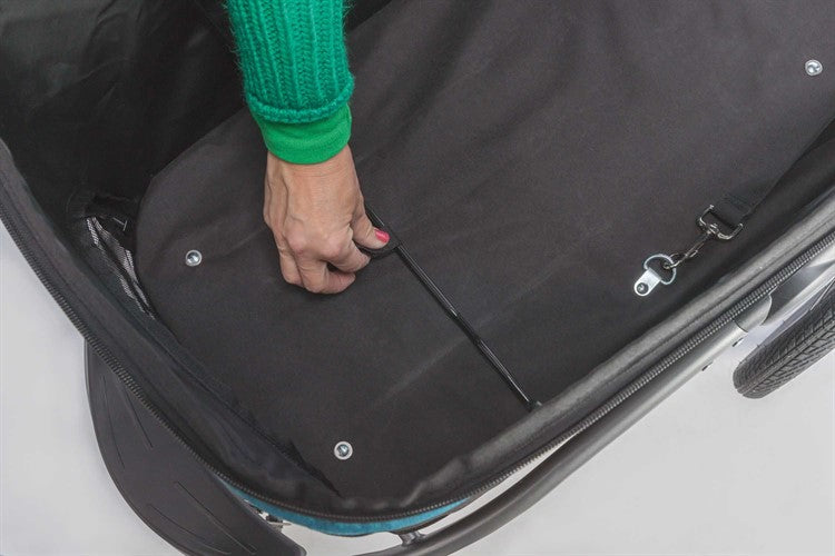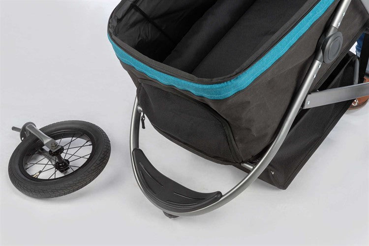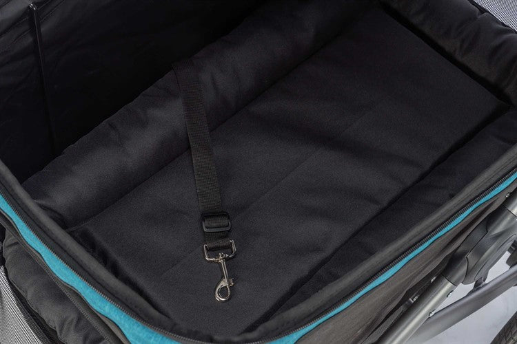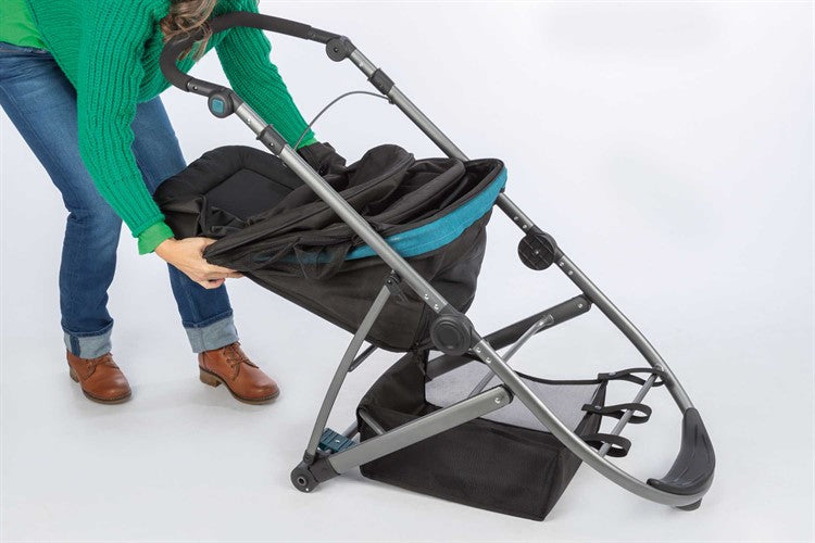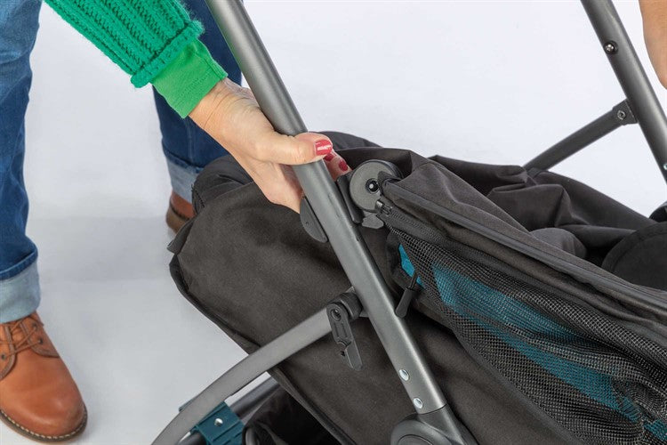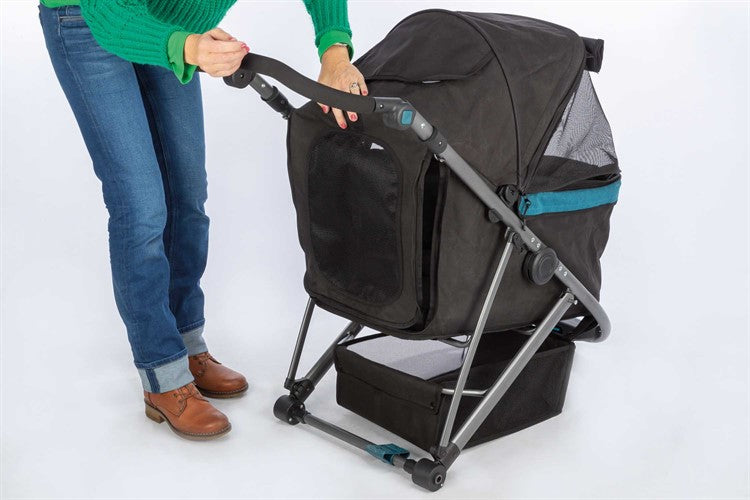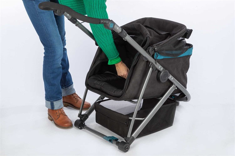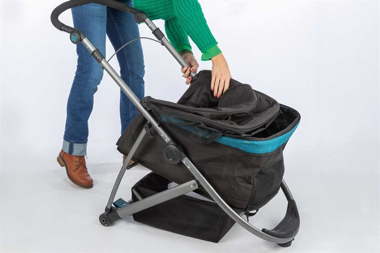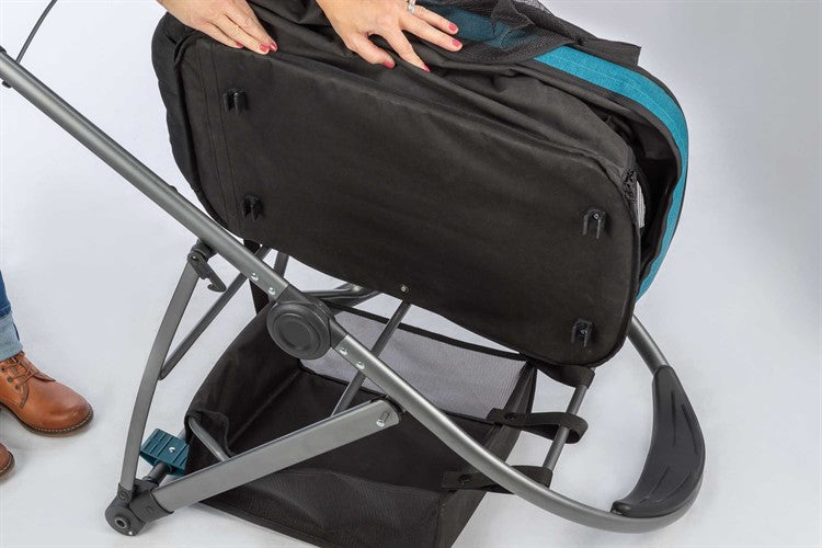 For added comfort, the stroller includes a removable cushion with a washable cover. The handle is padded and height-adjustable to ensure a comfortable grip, and there’s even a removable storage basket for carrying essentials. Made with a durable metal frame and high-quality polyester fabric in a stylish black and petrol color combination, this stroller is both functional and sleek.