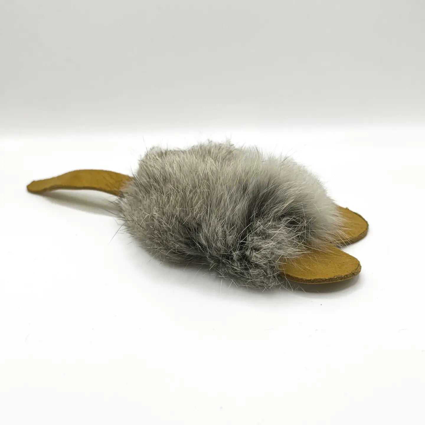 Leksaker i kaninpäls och läder att jaga och bära runt på är en favorit hos katterna.
